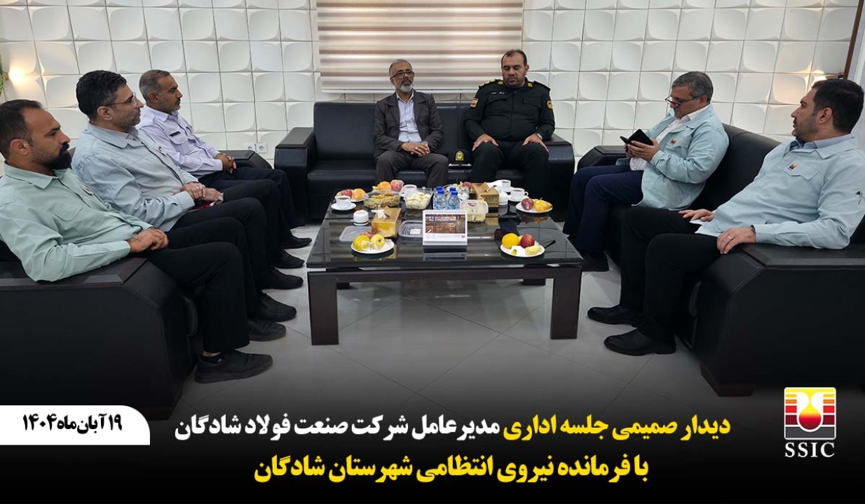 روز دوشنبه ۱۹ آبانماه ۱۴۰۴، سرهنگ روحالله عشیری، فرمانده نیروی انتظامی شهرستان شادگان، با حضور در دفتر شرکت، با دکتر رضا کلانتر، مدیرعامل فولاد شادگان دیدار و گفتوگو کرد.