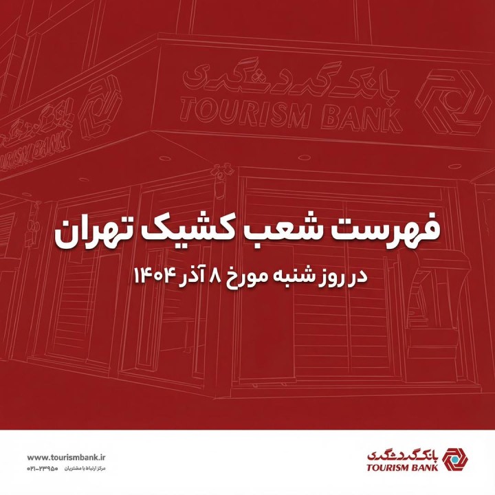 نحوه فعالیت شعب کشیک بانک گردشگری در روز شنبه مورخ 8 آذر 1404